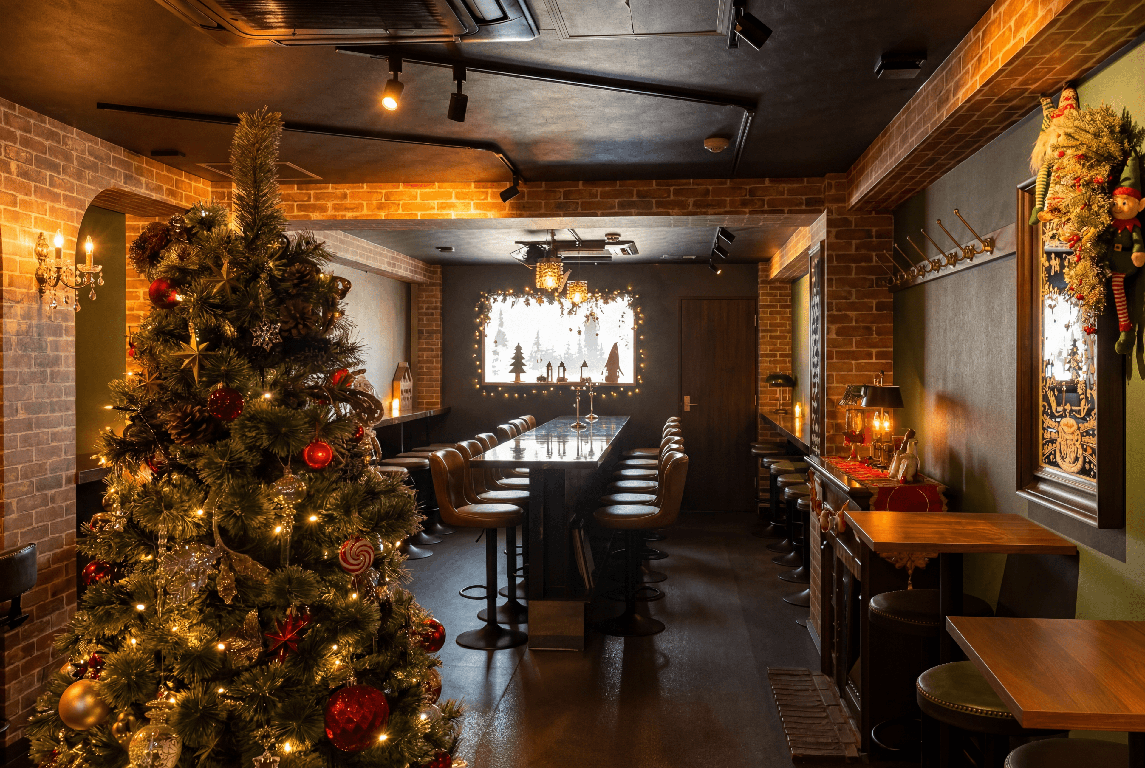4 Seasons Christmas Cafe & Barは、新大久保駅から徒歩わずか1分の場所にある、1年中クリスマスの魔法をお届けするカフェ&バーです。ビルの5階に広がるこの隠れ家的空間は、きらめくイルミネーションと温もりあるインテリアで彩られ、まるでクリスマスの世界に迷い込んだよう。パティシエ手作りのバスクチーズケーキや、クリスマスカラーのオリジナルドリンクとともに、日常を離れた特別なひとときをお過ごしいただけます。デート、女子会、記念日のお祝いに最適です。